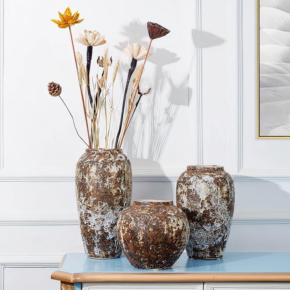 These earth toned vases are giving off a rustic flair with a unique worn look that is simply elegant. These artisan pieces come in three different variations, each bringing a new element to any tabletop.
