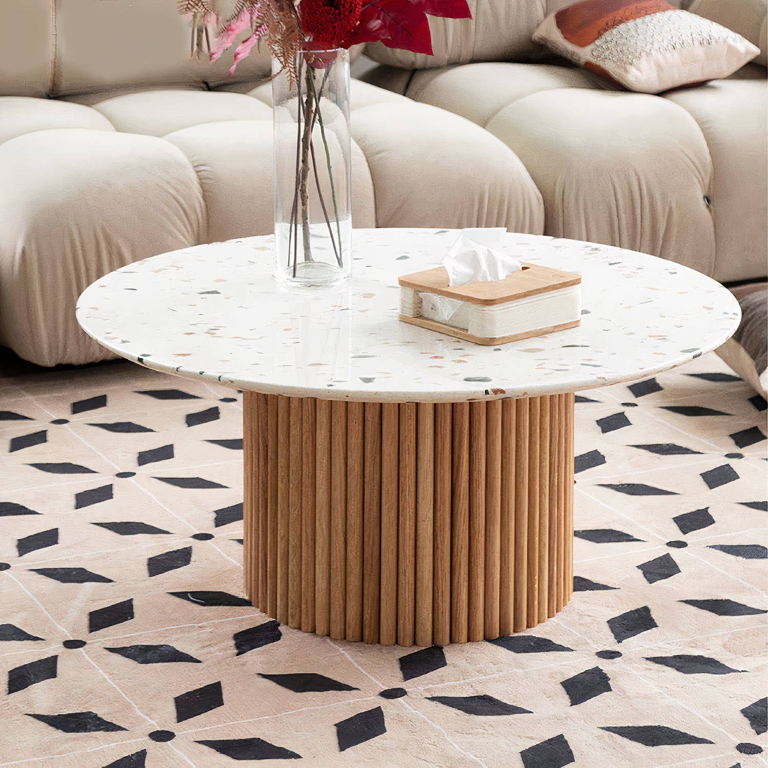 Take modern meets traditional opulence to the next level with the Karon coffee table. This stunning focal point features a solid, architecturally inspired base in a warm ashwood and a luxurious speckled marble countertop. Available in two sizes.