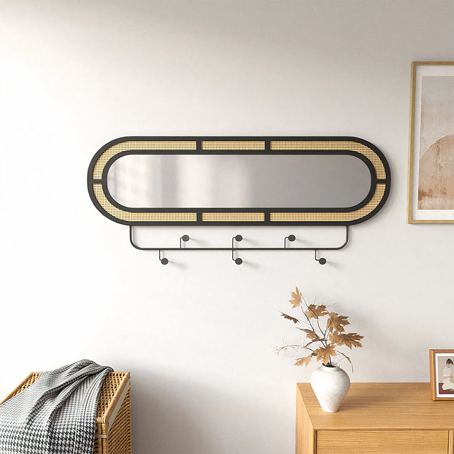 Add a touch of boho to your aesthetic with the Margitta mirror. Featuring a black framed hand-woven rattan, the Margitta mirror is full of charm that will let it stand out in your home. Designed to be both simple and elegant, Margitta exudes class and luxury making it integrate perfectly in both contemporary and traditional home décor.