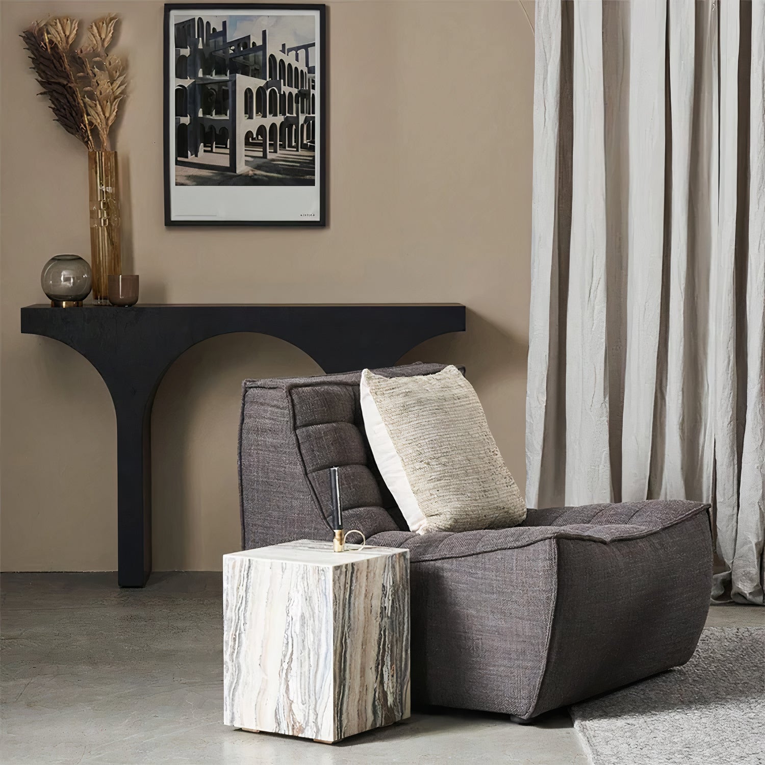 The Nubia Console table holds parallels to the old aqueducts from the Roman Empire. The strong repetition of arches are creates a beautiful silhouette combining architecture and design, creating a boxy and pure design piece. Offered in three sizes.
