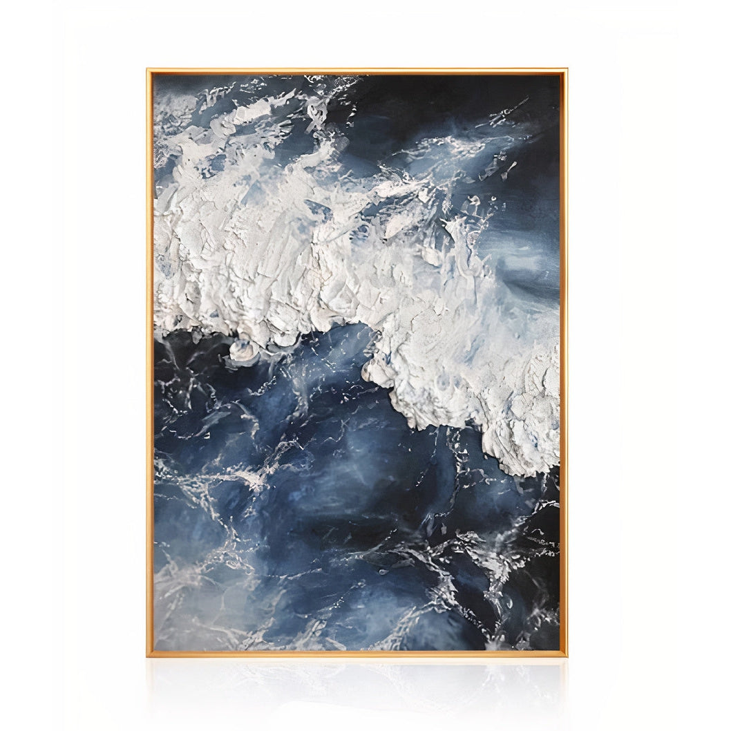 The Rasul painting is a gorgeous piece resembling incredible ocean waters. Featuring a texturized splash effect in stunning blue hues with white accents, this appealing piece is certain to bring that hint of the ocean to your home. This statement piece offers a modern design with a classic natural element- the beautiful ocean. Choose from different sizes to ensure your ideal vision.