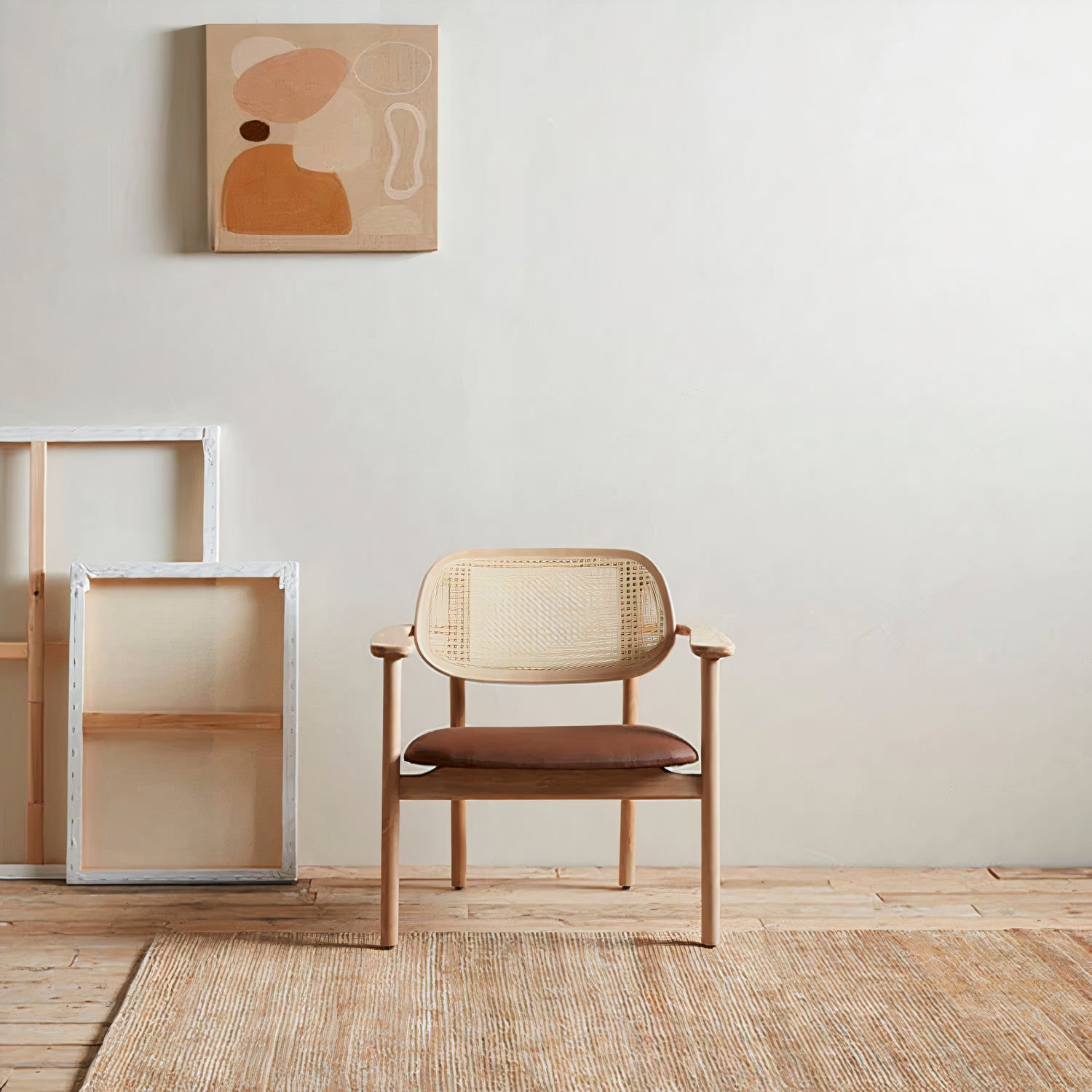 A contemporary style with a touch of vintage nostalgia, the Stina chair is characterised by it’s structured body and rattan accents. Offered in a choice of supple genuine leather or soft to touch boucle, this design is a characterful and eye-catching focal point in every colour way.