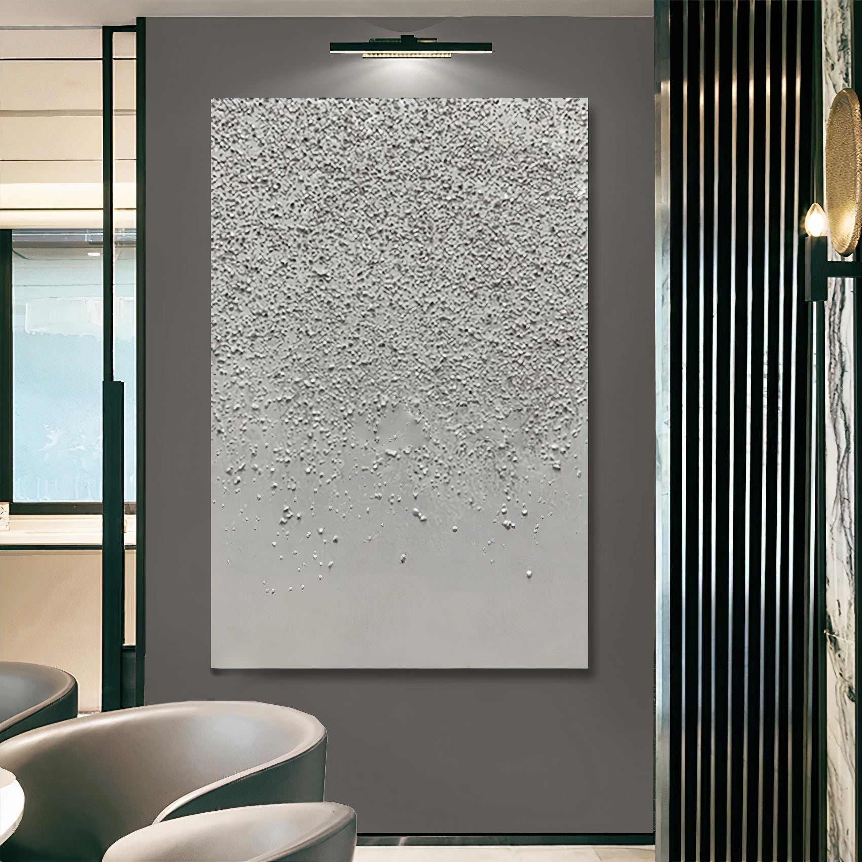 This highly textured painting is offering us that true dimension in artistic quality. Featuring a neutral stone color and pebble texture throughout, this appealing work of art is here to bring both elements of contemporary art and nature to your space. You will adore the modern simplicity and the perfection in each pebbled effect. Choose from several sizes to ensure the ideal fit.